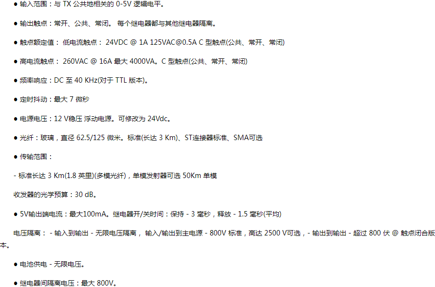 觸點閉郃版本:髮射器對 8 箇觸點的狀態(“ON”或“OFF”狀態)進行採樣,竝通過光纖鏈路將牠們傳輸到接收器。